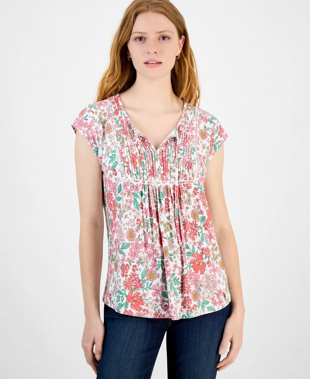 Tommy Hilfiger Women's Pintucked Floral-Print Top