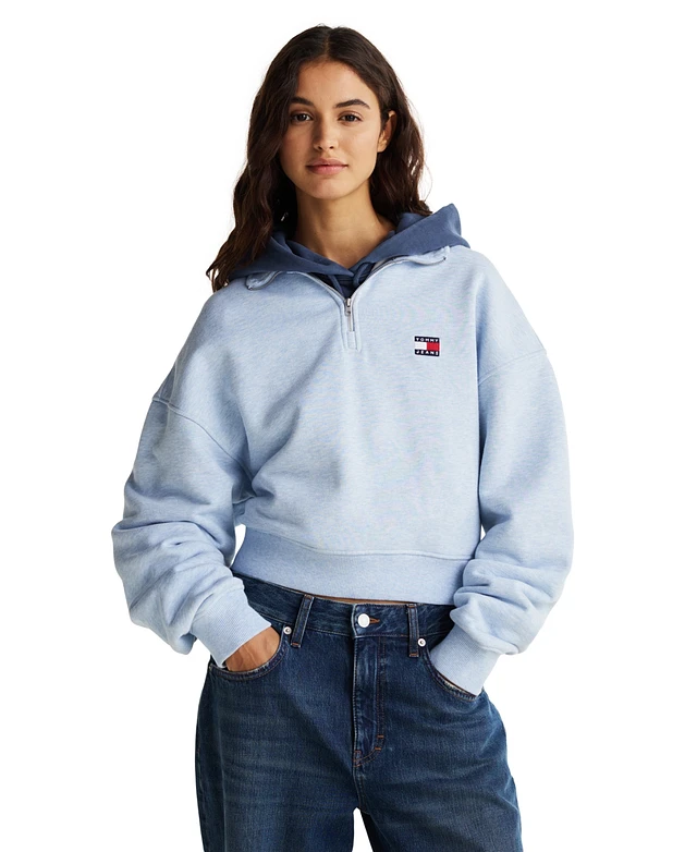 Tommy Jeans Women's Boxy Cropped Badge Quarter-Zip Sweatshirt