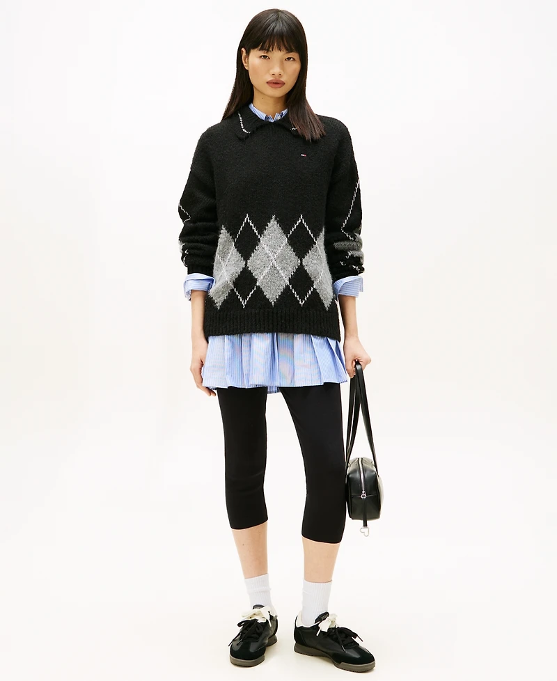 Tommy Jeans Women's Oversized Argyle Polo Collar Sweater
