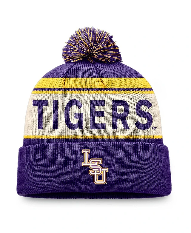 Top of the World Men's Purple Lsu Tigers Prime Cuffed with Pom Knit Hat