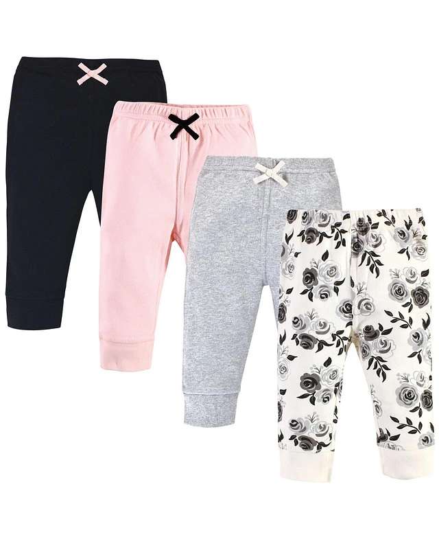 Touched by Nature Toddler Girls Organic Cotton Pants 4pk, Black Floral, 2
