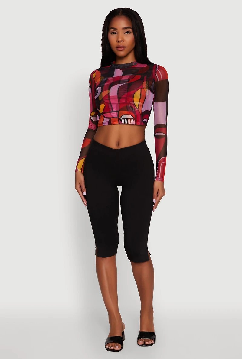 Trendy Mesh Sheer Long Sleeve Crop Top with Printed Pattern in Ponce, PR