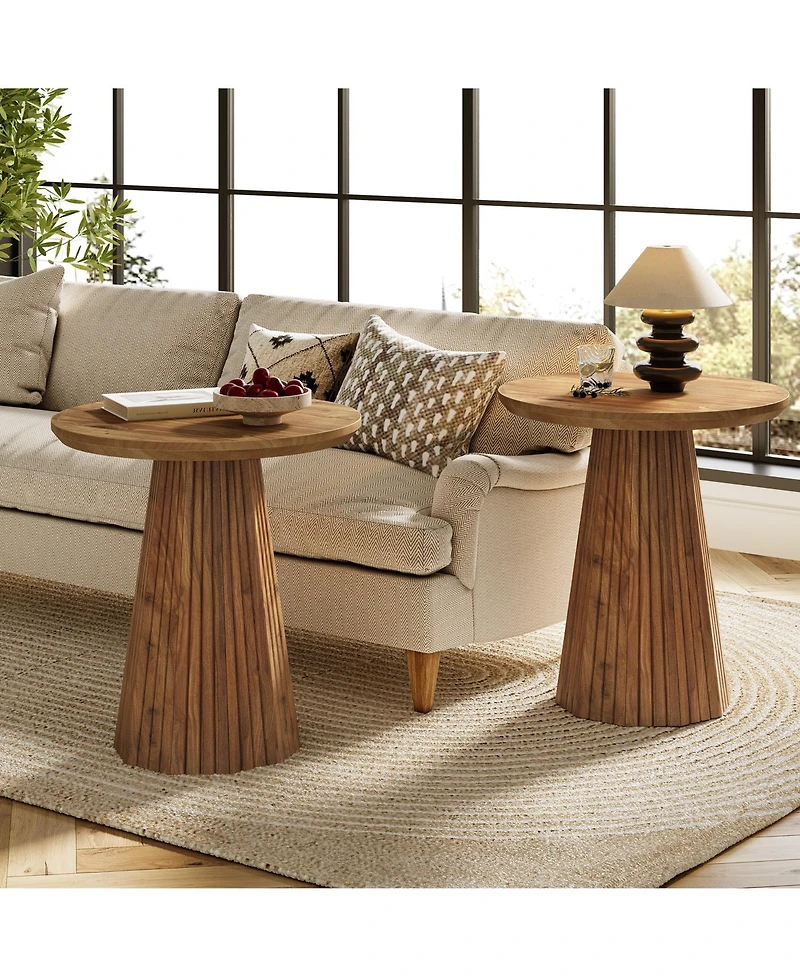 Tribesigns Solid Wood End Table Set of 2, 19" Small Round Pedestal Side Table with Fluted Base, Farmhouse Bedside Table for Living Room, Small Sp