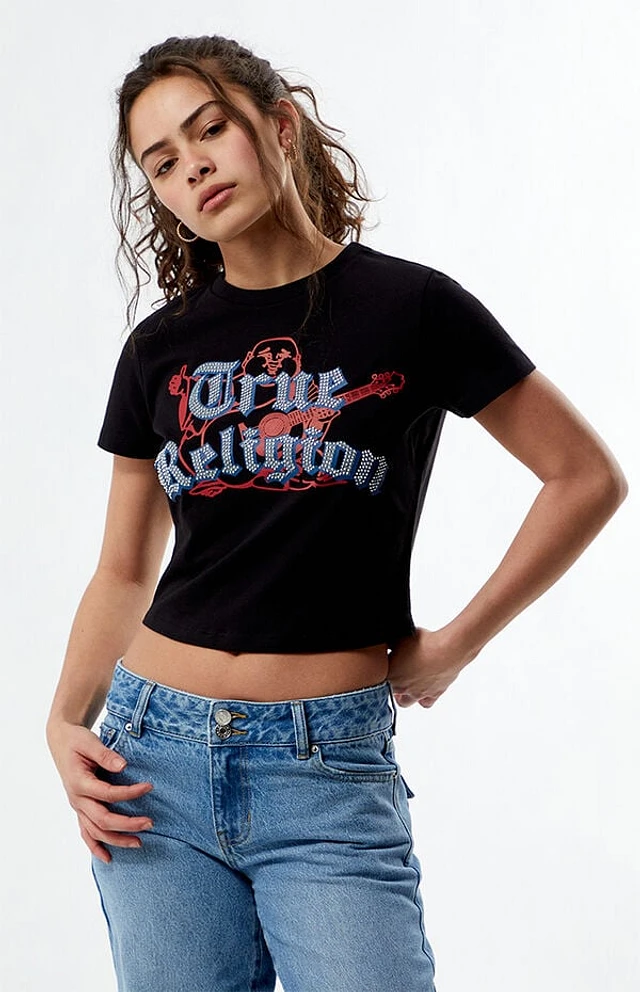 True Religion Crystal Embroidered Raw Cut Cropped Tank Top