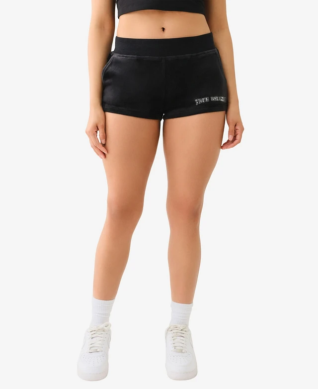 True Religion Women's Crystal Lips Velour Hot Shorts