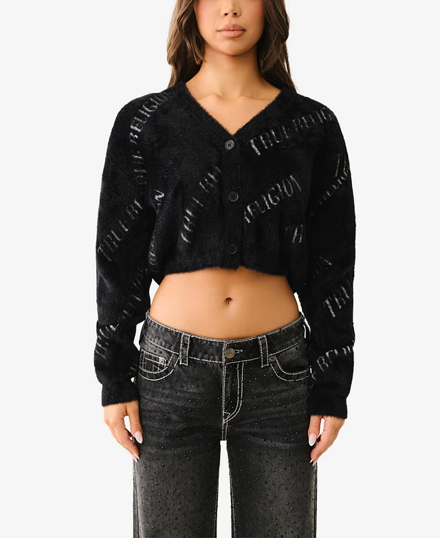 True Religion Women's Fuzzy Logo Cardigan Sweater