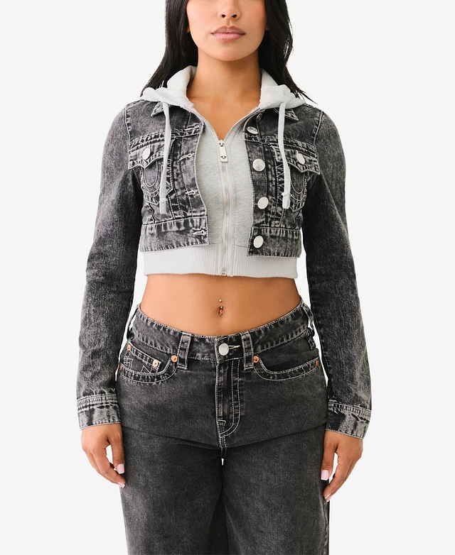 True Religion Women's Crystal Velour Shrunken Hoodie