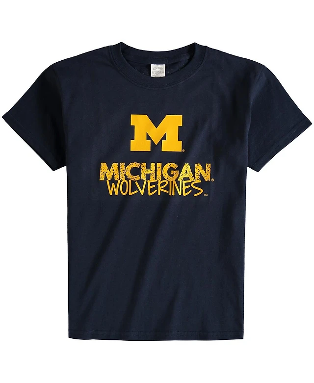 Two Feet Ahead Big Boys and Girls Navy Michigan Wolverines Crew Neck T-Shirt