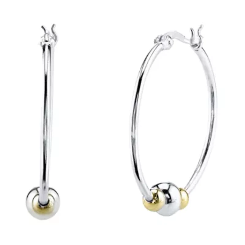 Two-Tone Sterling Silver Triple Bead Hoop Earrings