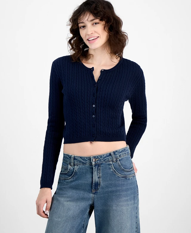 Ultra Flirt Juniors' Baby-Cable-Knit Cropped Cardigan