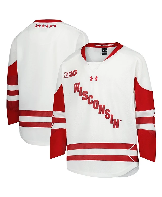 Under Armour Big Boys and Girls White Wisconsin Badgers Replica Hockey Jersey