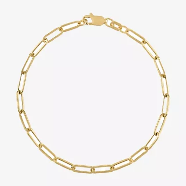 Womens 10K Gold 7 3/4 Inch Hollow Paperclip Chain Bracelet