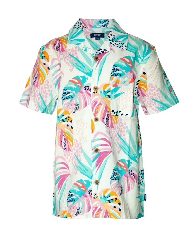 Univibe Big Boys Leopard Floral Print Short Sleeve Woven Shirt