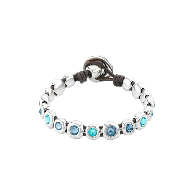 UNOde50 Sterling Silver Murano Crystal Leather Bracelet