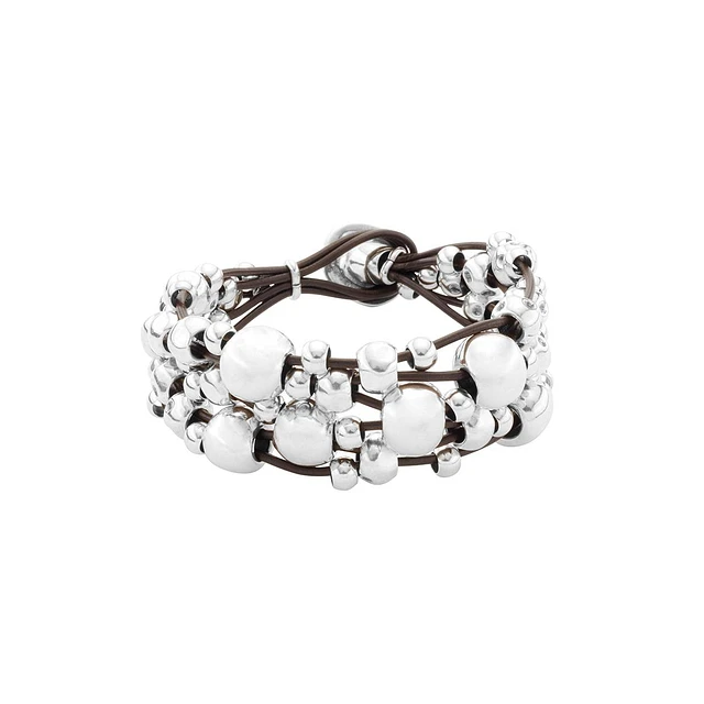 UNOde50 Sterling Silver-plated Leather Rows Bracelet