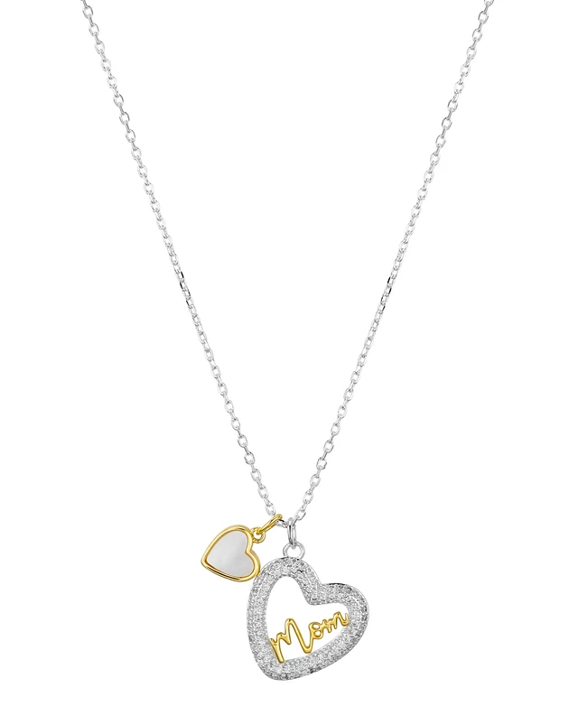 Unwritten Cubic Zirconia and Mother of Pearl Mom Open Heart Necklace