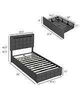 Upholstered Led Bed Frame with Headboard and 4 Drawers-Twin Size