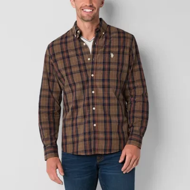 U.S. Polo Assn. Stretch Poplin Heather Mens Classic Fit Long Sleeve Plaid Button-Down Shirt