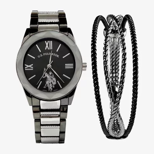 U.S. Polo Assn. Womens Silver Tone 2-pc. Watch Boxed Set Usc6015jc