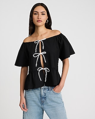 Short Sleeve Tie Front Peplum Top