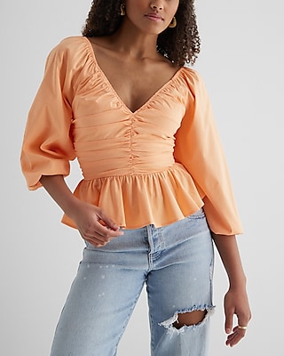 V-Neck Pleated Peplum Top