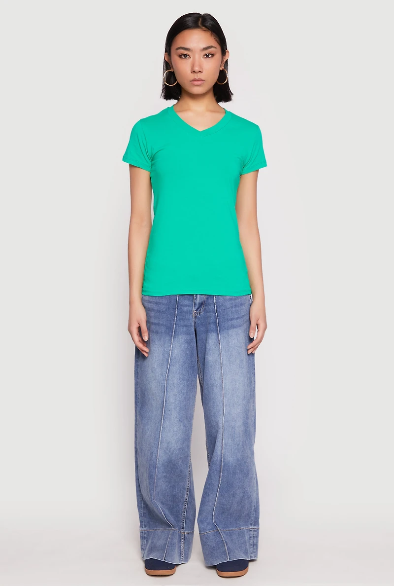 Upgrade your everyday wardrobe with this must-have V Neck Short Sleeve Tee. Perfectly combining comfort and style, this classic fit top offers a timeless silhouette that works effortlessly for any occasion. Whether you're running errands or hanging out with friends, this versatile tee is your new go-to. Its simple design makes it easy to dress up or down, giving you endless styling options. Feel confident and cool in this essential piece that adds a touch of effortless chic to your look.