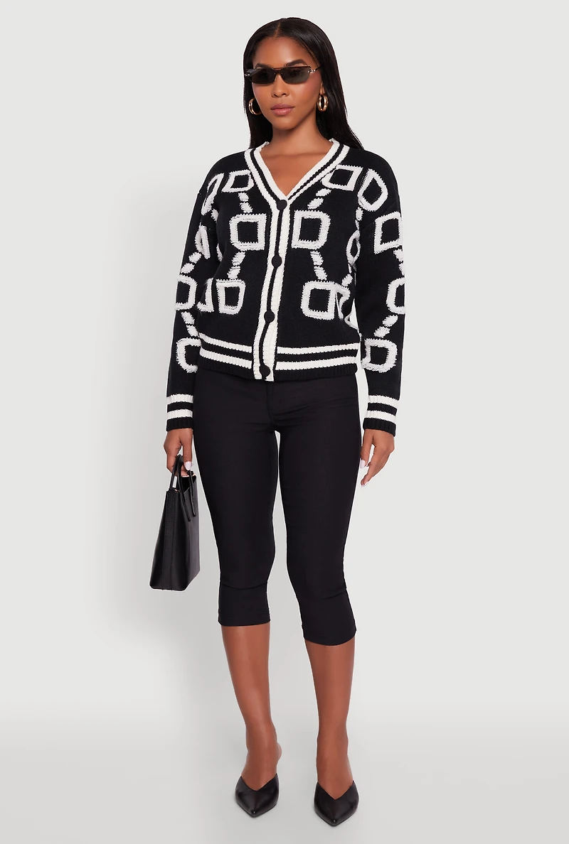 Varsity Stripe Chenille Chain Print Cardigan