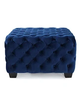 Velvet Upholstered Square Ottoman with Deep Button Tufting and Wood Legs for Living Room or Lounge Seating-The Pop Home in Ponce, PR