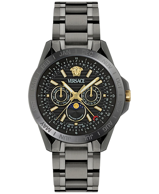 Versace Men's Swiss V-Galaxy Moonphase Gunmetal Ion Plated Bracelet Watch 43mm