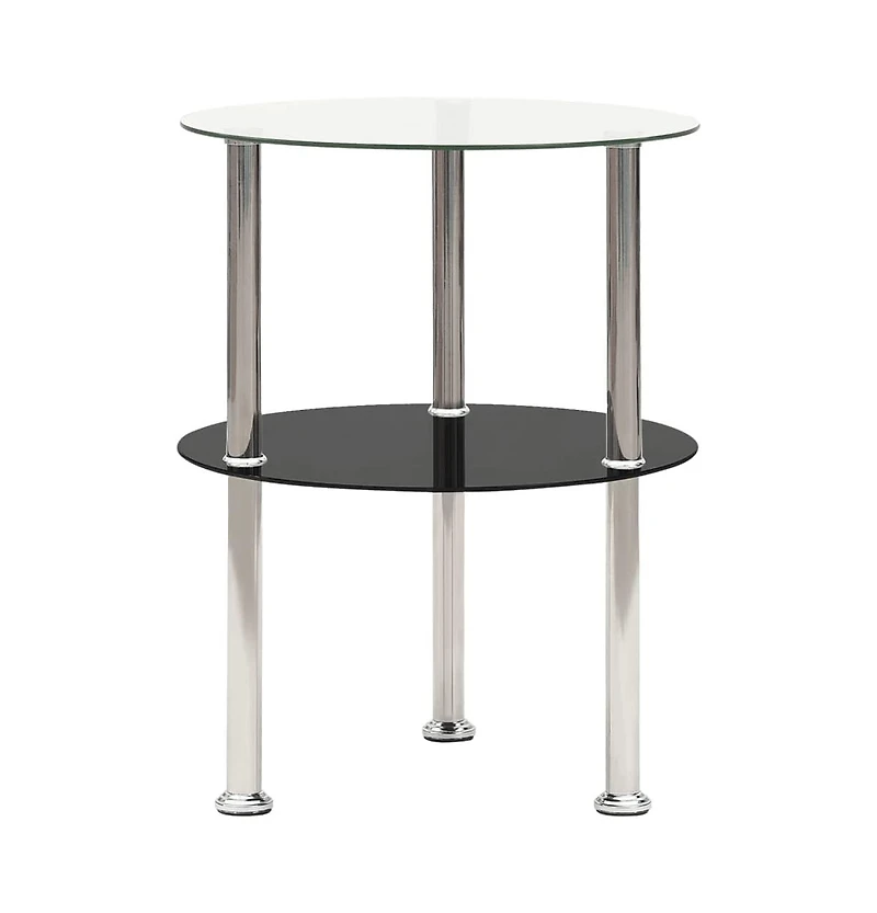 vidaXL 2-Tier Side Table Transparent & Black 15" Tempered GlassvidaXL 2-Tier Side Table Transparent & Black 15" Tempered GlassvidaXL 2-Tier Side Table Transparent & Black 15" Tempered Glass