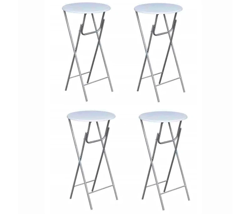 This 4-Piece White Folding Bar Table Set is all about functionality and style for any dining or gathering space