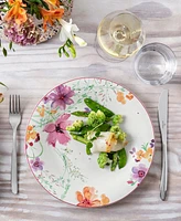Prolong spring with the lively Mariefleur dinner plate. Splashy colors adorn premium white porcelain edged in red and designed for everyday dining. Mix and match with New Cottage dinnerware, also by Villeroy & Boch.