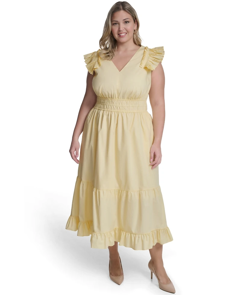 Vince Camuto Plus Flutter-Sleeve Tiered Maxi Dress