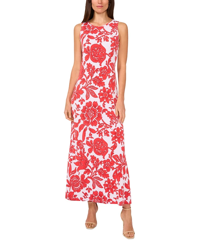 Vince Camuto Women's Floral Sleeveless Keyhole-Back Crewneck Maxi Dress