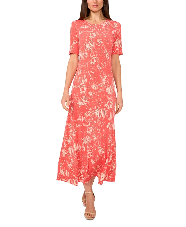 Vince Camuto Women's Printed Elbow-Sleeve Maxi Dress