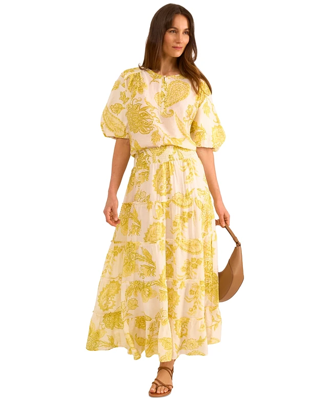 Vince Camuto Women's Printed Tiered Smocked-Waist Maxi Skirt