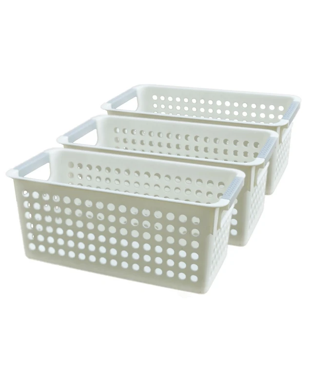 Vintiquewise Rectangular Plastic Shelf Organizer Basket with Handles, Set of 3