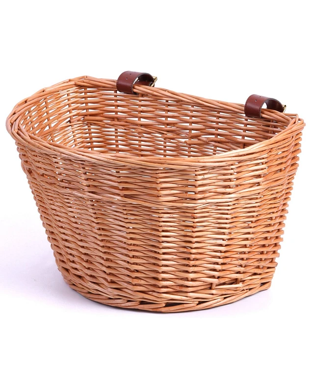 Vintiquewise Wicker Front Bike Basket with Faux Leather Straps
