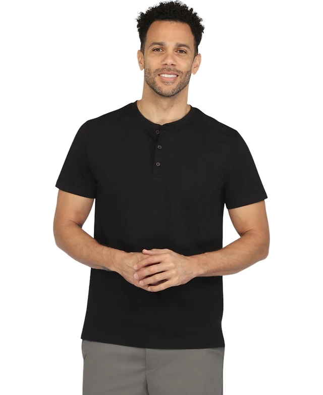 Men's Short Sleeve Henley Polo Shirt with Contrast-Trim
