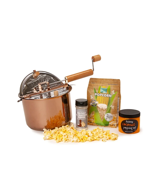 Wabash Valley Farms Copper Plated Whirley Pop Hull-Less Buttery Popcorn Gift Set