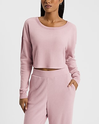 Waffle Crew Neck Long Sleeve Cropped Boyfriend Tee