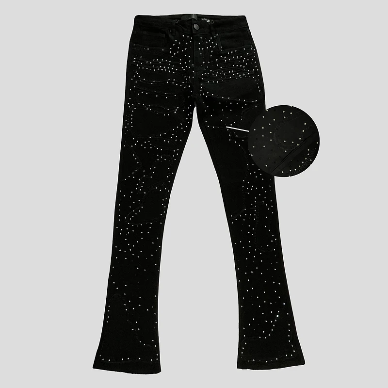 - Denim negro con incrustaciones de strass