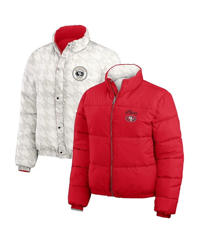 Wear by Erin Andrews Women's Scarlet/White San Francisco 49ers Reversible Cropped Full-Zip Puffer Jacket