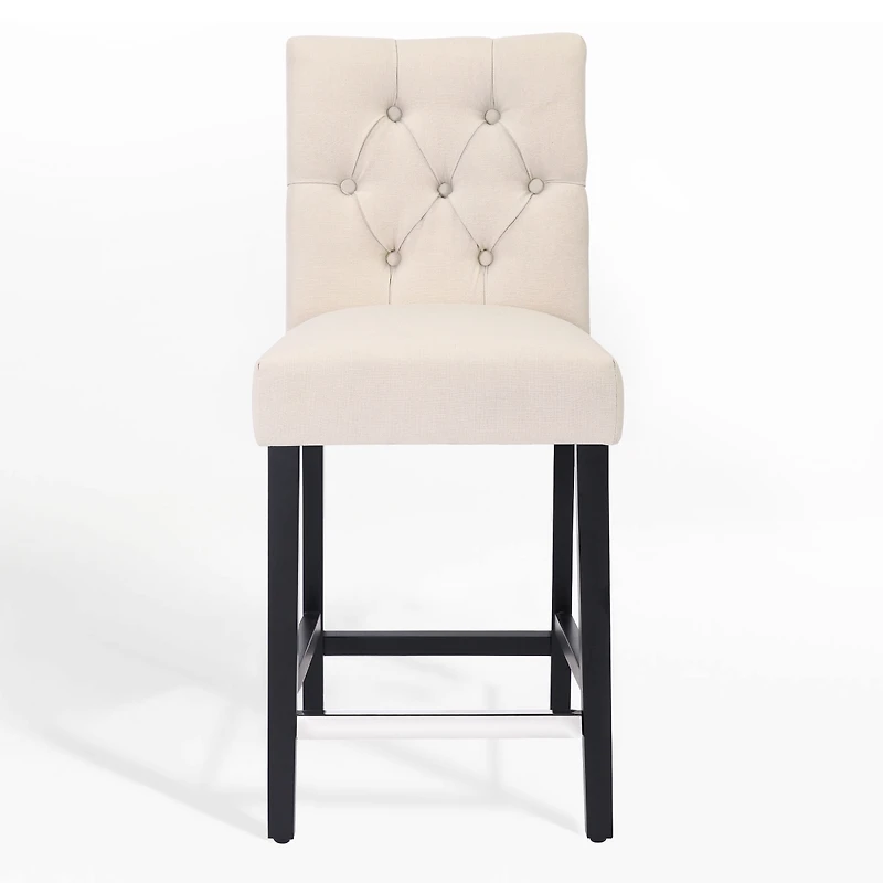 The perfect choice for your kitchen island, this counter stool adds classic style with a diamond button-tufted back and solid wood legs. The dense foam padding, sinuous spring support, and soft fabric upholstery makes it the perfect stool. The metal footrest protects against scuffs and scratches.