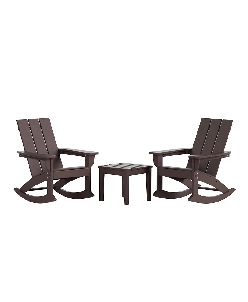 Make your outdoor space the ideal place for comfort and relaxation with this modern rocking chair and table set. With no need to worry about sacrificing comfort for style these modern Adirondack chairs offer waterfall front that make for supportive and comfortable chair that will remain in style.