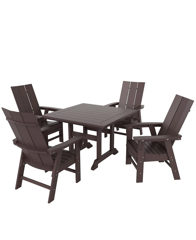 Impress your loved ones at your next outdoor family dinner with the 5-Piece outdoor dining set. This all-weather set seats up to four and features dining chairs with the look of modern Adirondack design. With a durable and spacious square dining table, this set is perfect for casual outdoor dining.