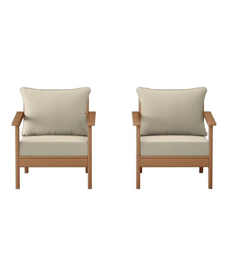 WestinTrends Outdoor Modern Hdpe Patio Teak Club Chairs with Deep Seat Cushions (Set of 2) in Ponce, PR