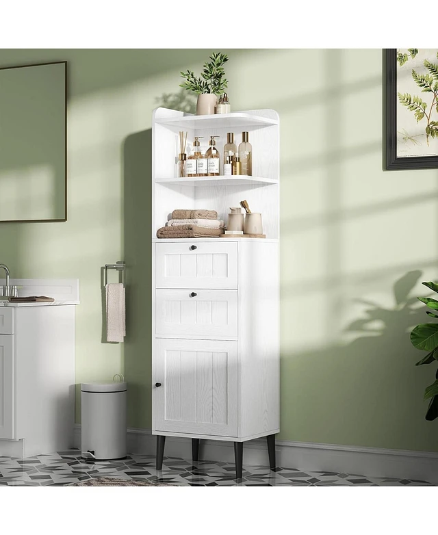 Tall Bathroom Storage Cabinet with Doors, Drawers, Shelves, Adjustable Shelf