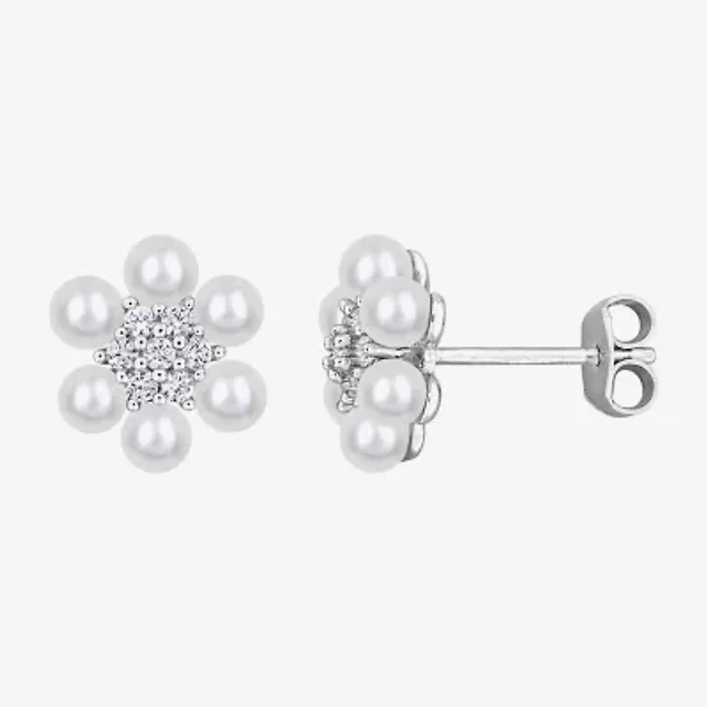 White Cultured Freshwater Pearl Sterling Silver 11mm Flower Stud Earrings