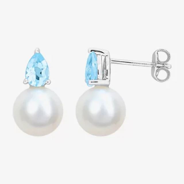White Cultured Freshwater Pearl & Gemstone 18K Gold Over Silver 15.5mm Stud Earrings